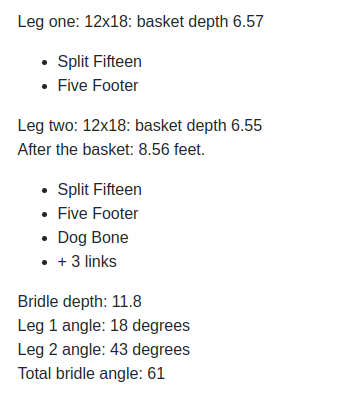 The application will then break up the second leg in increments of largest to smallest pieces from the 30 footers down to the inclusion of an extra shackle if necessary. It will not produce a leg that you wouldn't have built yourself. It will never build a leg that is two dogbones and two links (this is a real life example of a leg I've seen a show rigger insist I build).